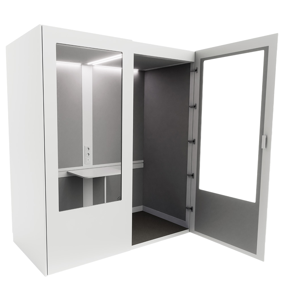 Det betyder, at vi ikke kun leverer lydisolerede mødebokse, men også kan rådgive jer om den samlede løsning, der passer til jeres behov. Uanset om det handler om indretning, teknologi eller optimering af jeres arbejdsrum, har vi specialisterne til at hjælpe jer.